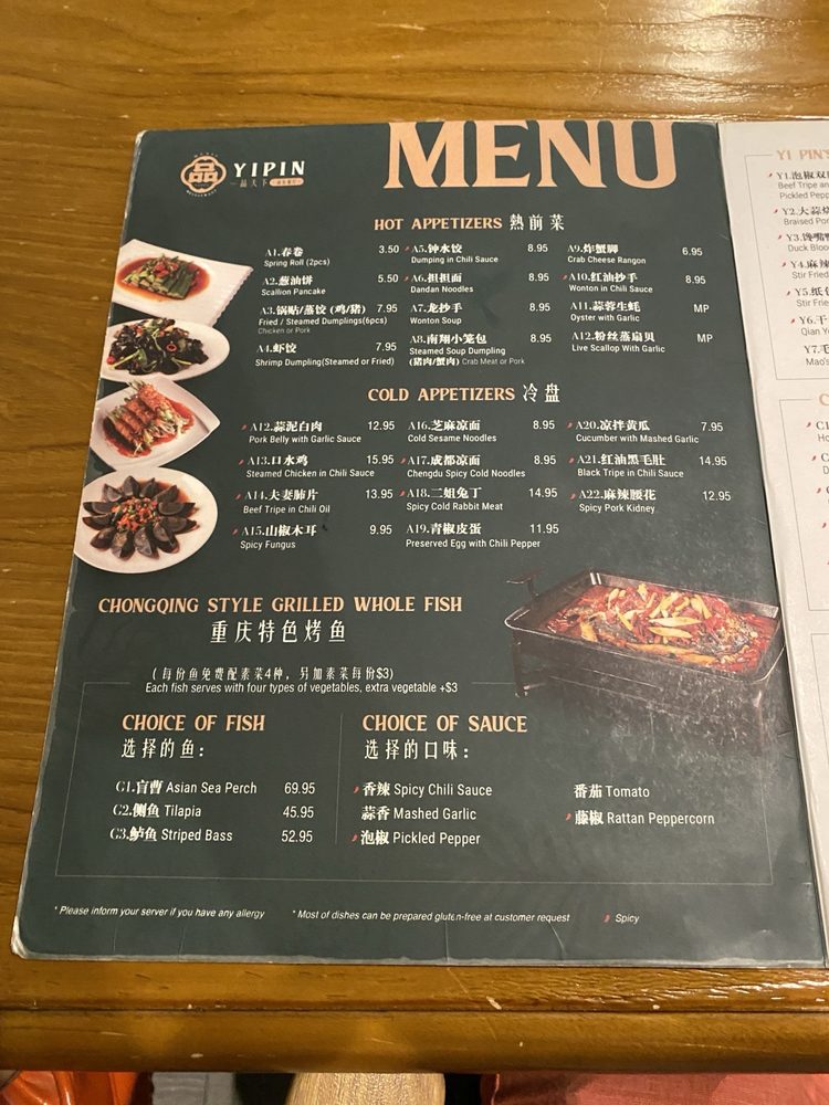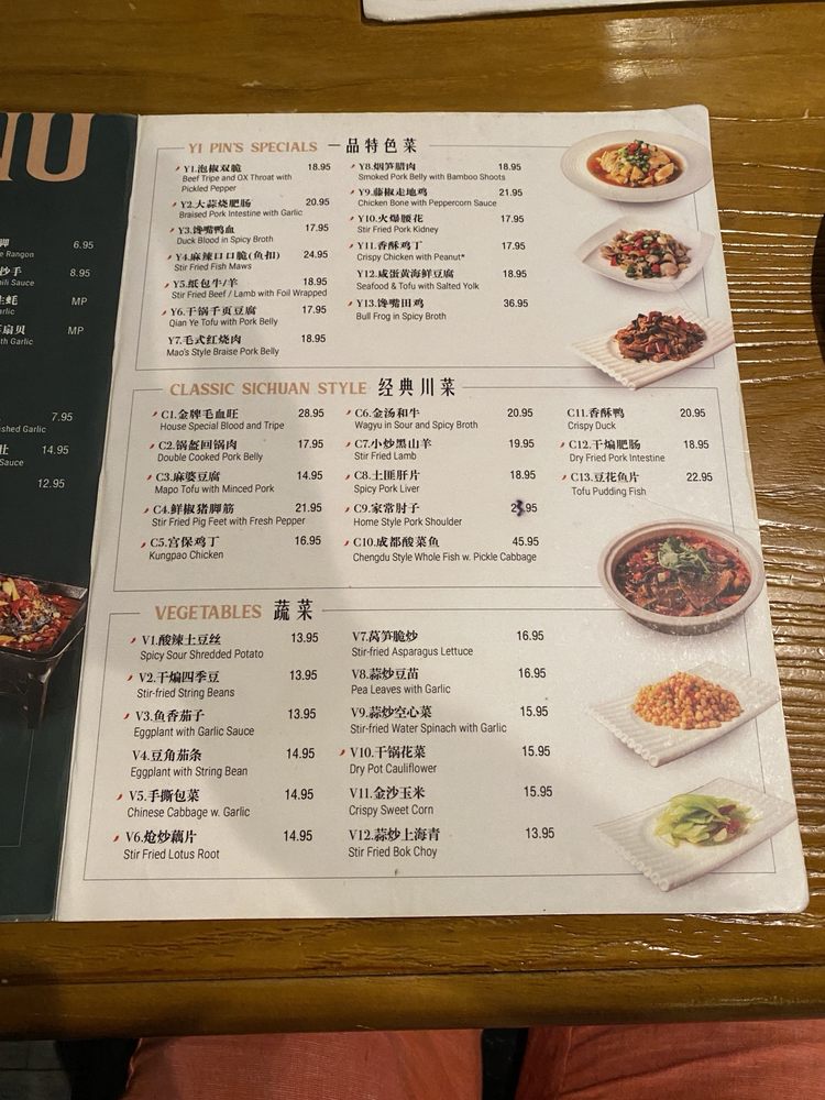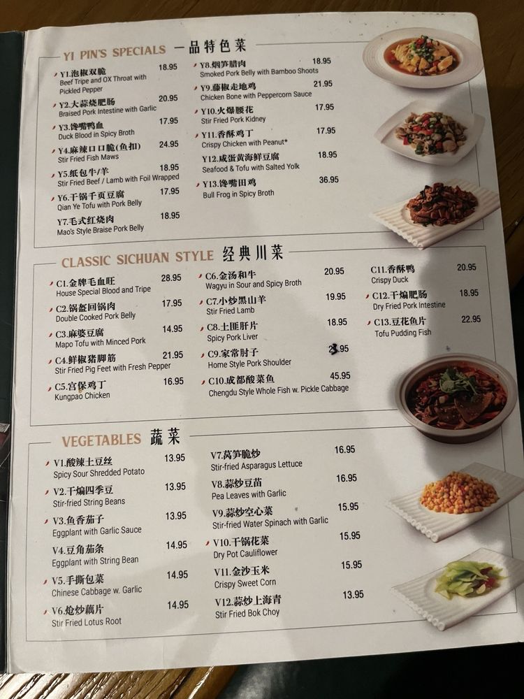 Yi Pin Restaurant, a Chinese eatery located in Philadelphia, offers a diverse menu of appetizers, soups, and combo options. Some standout appetizers include Beef Tripe in Chili Oil, Crab Cheese Wonton, and Dandan Noodles. For soup lovers, options like Egg Fried Tomato Soup and Sour Cabbage Fish Soup provide a comforting and flavorful experience. The combo offerings, such as Scallion Pancake with Double Cooked Pork Belly, showcase the restaurant's ability to blend flavors and textures seamlessly. With a trendy atmosphere and full bar, Yi Pin Restaurant is a great spot for casual dining with friends or family. The attentive waiter service and availability for delivery and takeout make it a convenient choice for a satisfying Chinese meal.